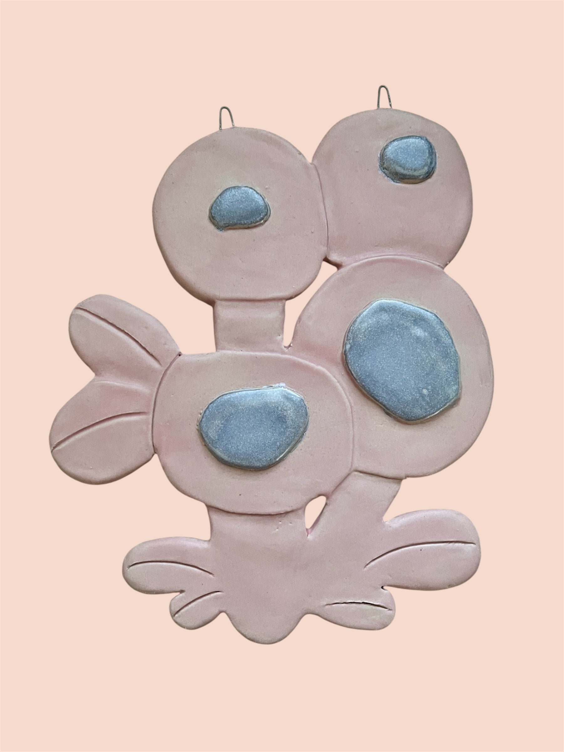 Taiteilija Heidi Parviaisen käsin tekemä, retrohenkinen, keraaminen seinäkoriste.