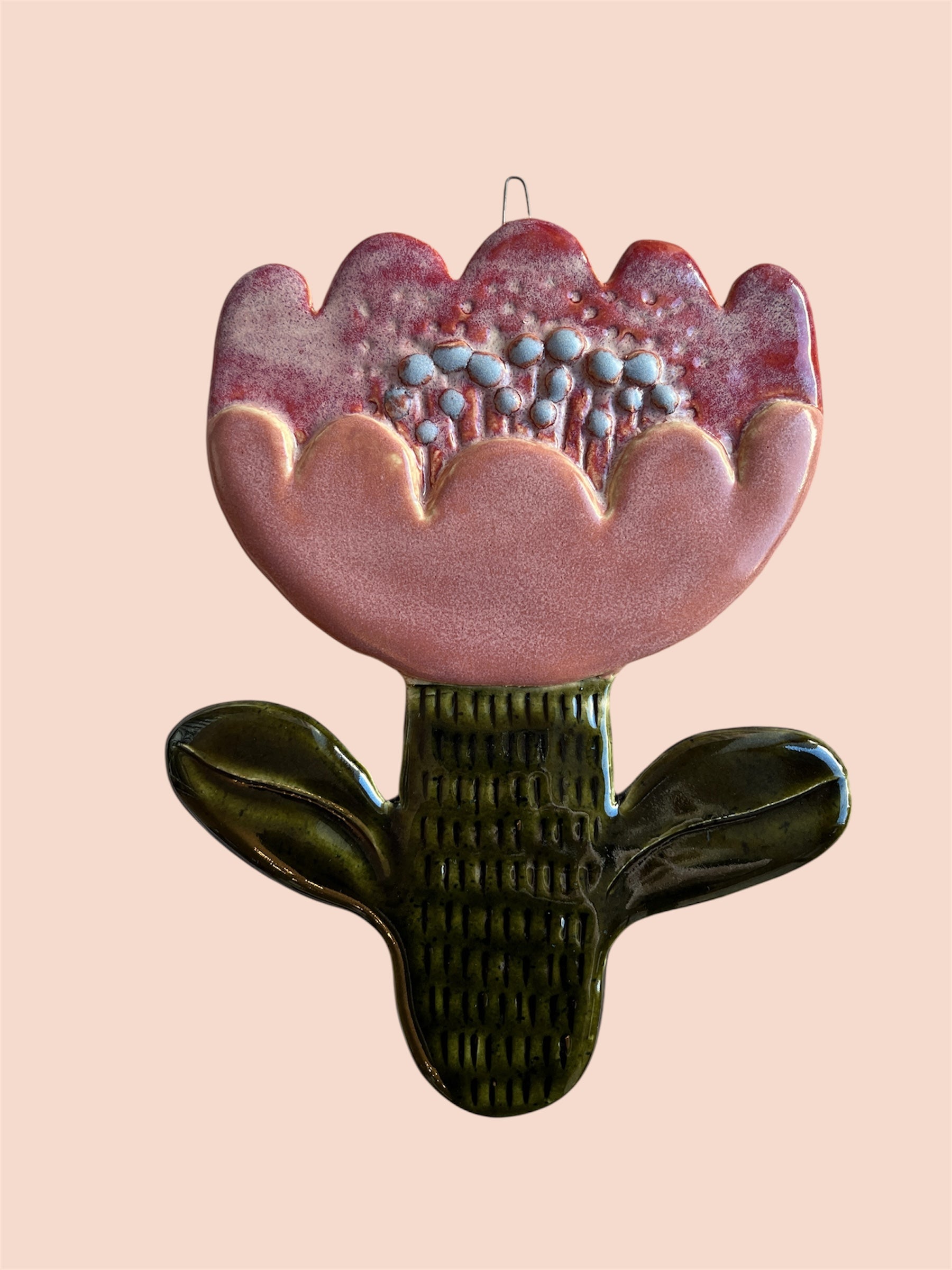 Taiteilija Heidi Parviaisen käsin tekemä, retrohenkinen, keraaminen seinäkoriste.