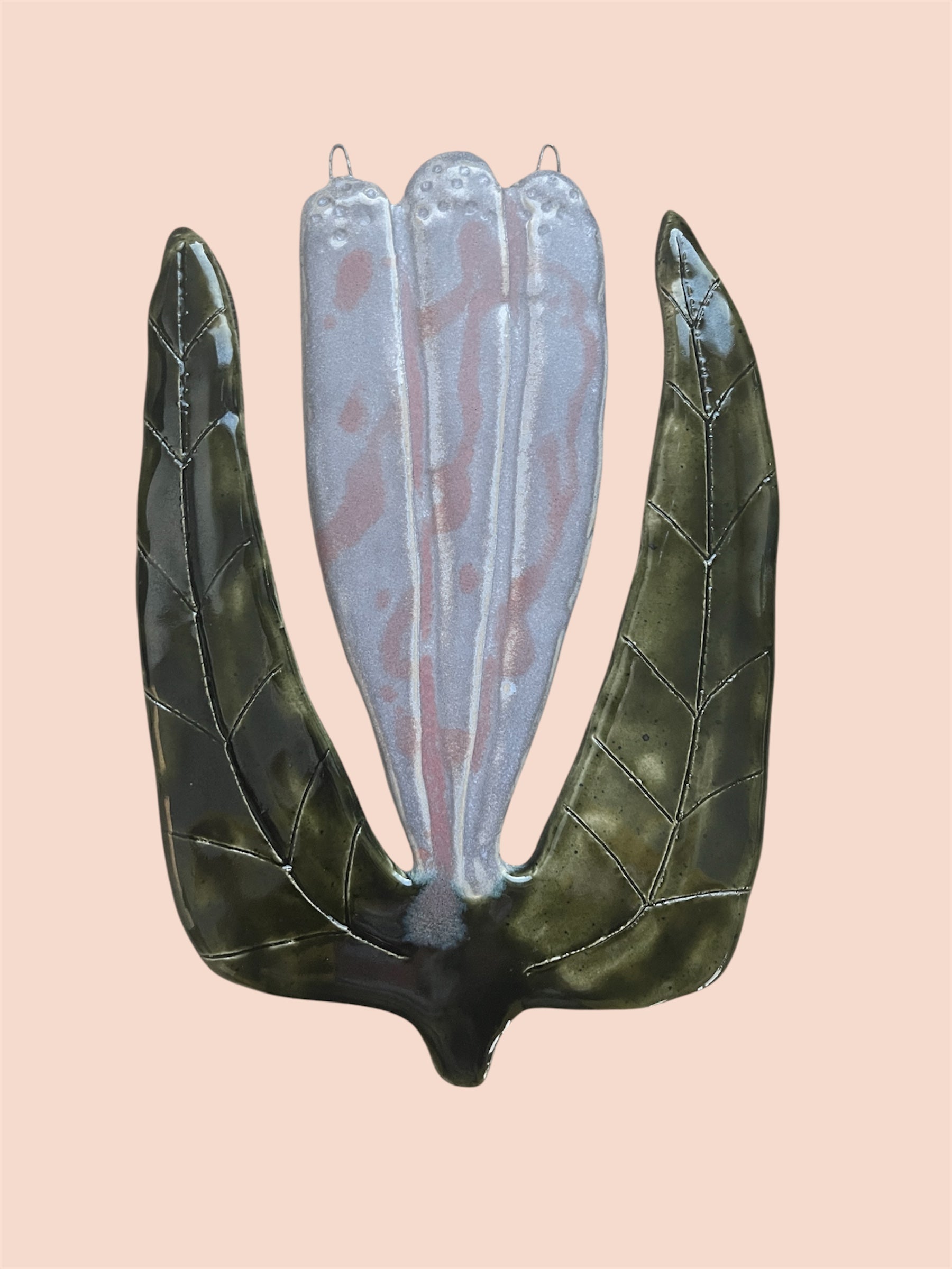 Taiteilija Heidi Parviaisen käsin tekemä, retrohenkinen, keraaminen seinäkoriste.